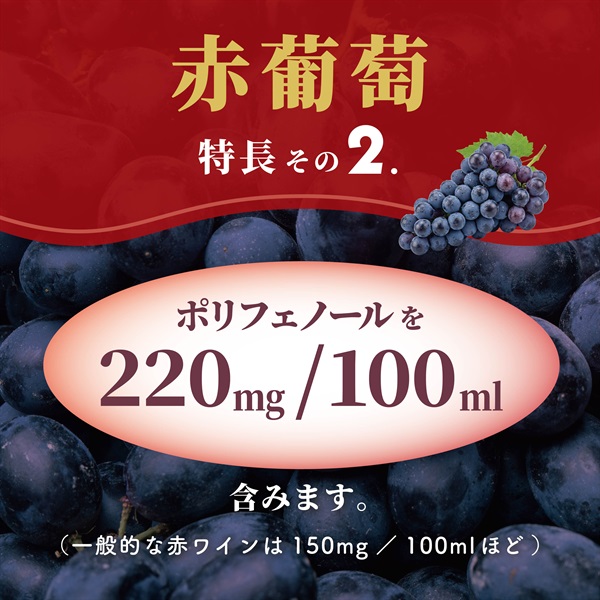 ポリフェノールを220mg/100ml含みます。(一般的な赤ワインは150mg/100mlほど)