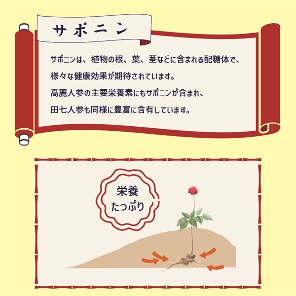 田七人参も高麗人参に勝るとも劣らない量のサポニンを含有しています。