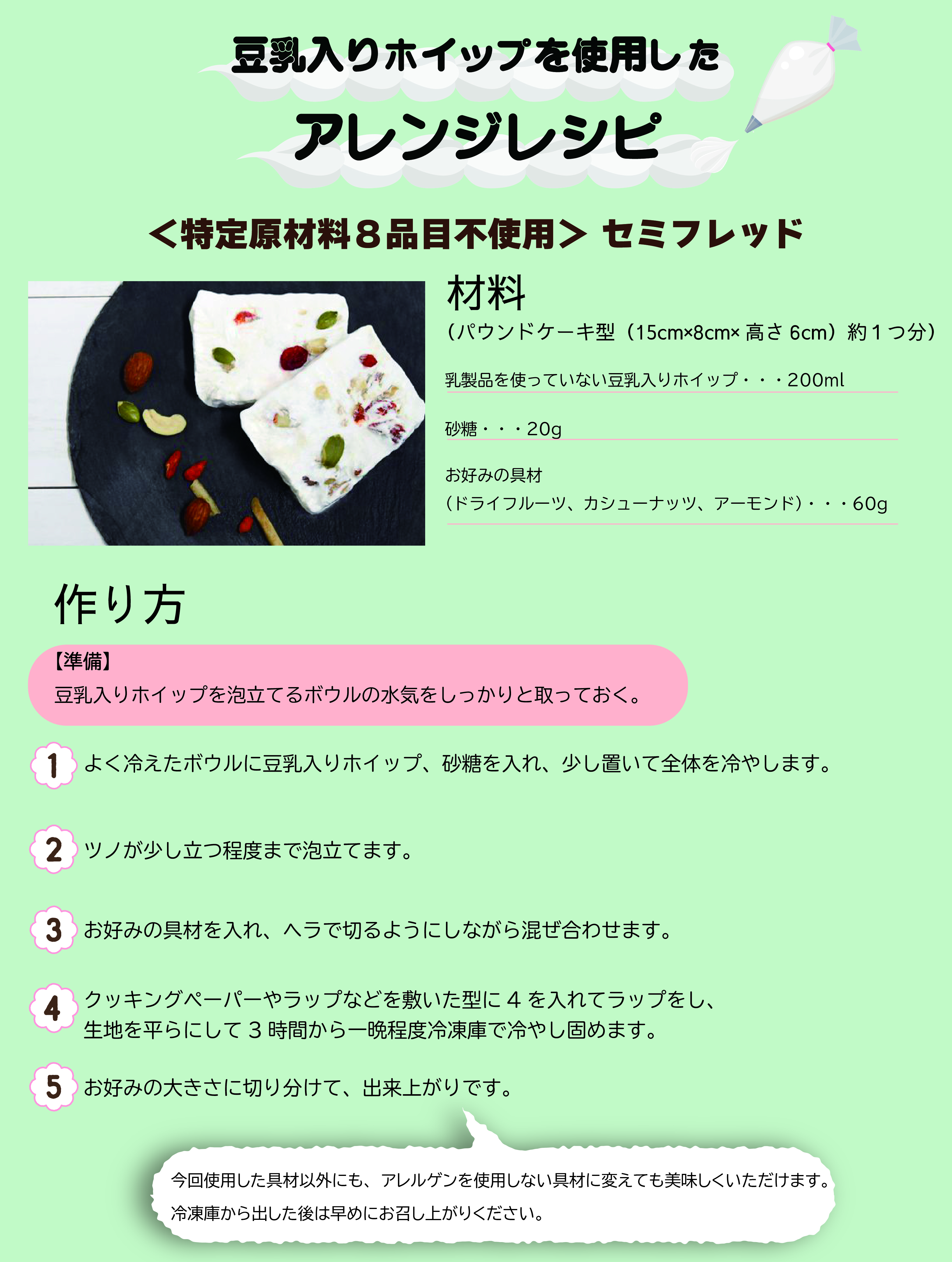 ■原材料名 植物油脂(国内製造)、有機豆乳、糖類(オリゴ糖、マルトース、砂糖)/乳化剤、安定剤(加工デンプン、増粘多糖類)、メタリン酸Na、香料、(一部に大豆を含む)